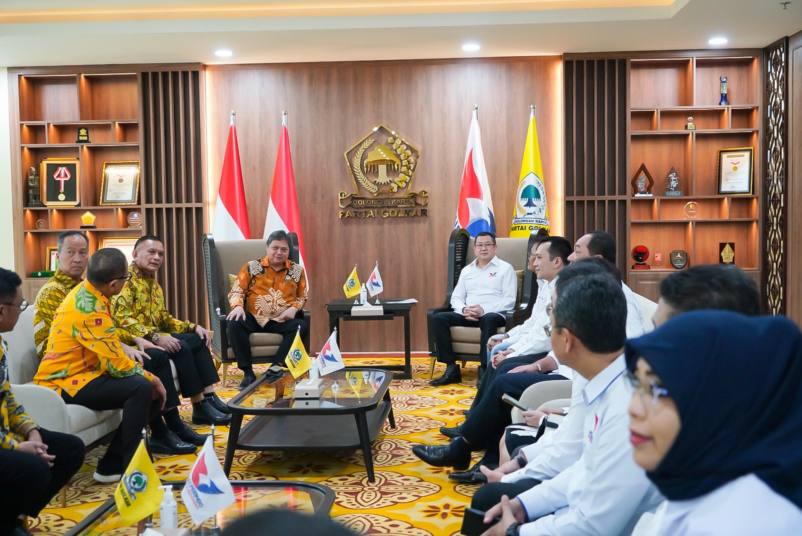 Partai Golkar dan Perindo bertemu membahas soal wacana terbentuknya koalisi besar menghadapi Pilpres 2024. Hal ini disampaikan oleh kedua ketua umum partai usai bertemu selama kurang lebih satu jam di Kantor DPP Partai Golkar, Senin (10/4) sore.